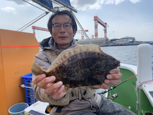 33~40cm 0~5匹 メイタカレイ シロギス 本日は2番手3枚。8名様で12枚。40cmの座布団サイズを筆頭に、良型食べ頃サイズ中心に釣れました。時合はいい反応ではありませんでしたが、細かく錨を打ち変えながらの拾い釣りでした。定期的な仕掛けの入れ替え、エサがボロボロになったら付け替えることを今期良くやると、釣れるチャンスがあがります。明日も出船致します。これらのことに留意し、是非大型の花見カレイゲットしてください。