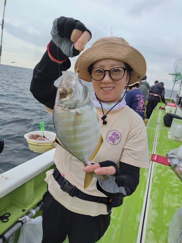 アジ 20~33cm 25~86匹 クロダイ 1.00~1.50kg クロダイ 最大2.00kg マダイ 最大3.50kg 潮色と流れ:薄濁ゆるい→濁り-。 風向きと強さ:北東ほどほど。 波高:1.0-1.5M→0.5-1.0M。 今日は、アジ型を出すと20センチから23センチ25センチクラスがメインに幅広の30センチクラスも交じってダブル、トリプルと後半の上げ潮の出ばには食い良かったです。