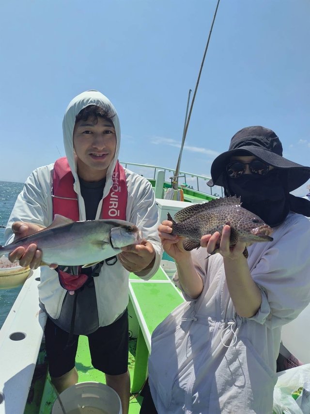 1.20~3.60kg 0~2匹 ワカシ イナダ 25~40cm 1~7匹 アジ 15~23cm 15~30匹 シロアマダイ 0~2匹 マダイ 8.60kg オオモンハタ ハナダイ サバアジ イトヨリ ヒラソーダガツオ カサゴ アカハタ 今日も青物五目乗合船で出船しました! アジ泳がせする数だけ確保して前半は あっちへウロウロ こっちへふらふらして ハナダイやシロアマダイ、イトヨリ、 サバ、シイラなど釣れました! 途中からイワシがいたので落とし込みなどをやった方は ヒラメ、良型オオモンハタのダブル ラストの帰り際にズドンと良いアタリ!! やり取りして上がってきたのは 8.6kgの大型マダイでした! 何かデカいのに切られたりしたので 粘っていて良かったです! そんな感じで、ヒラメ、マダイ、オオモンハタ、シロアマダイと高級ゲストが色々釣れて良い一日でした! 本日ご乗船の皆様、ありがとうございました! またのご乗船をお待ちしております! 明日は、8/23(土)はショート青物五目乗合船。 明後日、8/24(日)は1日青物五目乗合船で出船します! どちらも空席多数ですので 皆様からのご予約をお待ちしております。 ⬛︎ショート青物五目乗合は 朝の涼しいうちに釣りをして暑くなる前に戻り 朝は釣り、午後はゆっくりお過ごし出来ます。 また、お子さんが長時間釣りが出来るか心配な方もお試しには丁度良いかと! 1日船とショート船ご予約の際にお申し付けください。 ショート船は8/31(日)まで出船します! 8、9月も平日、土日共に空席多数! 皆様からのご予約をお待ちしております。 来週以降も空き多数ですので 皆様からのご予約をお待ちしております。 仕立船の募集もしておりますのでご相談ください。 料金、その他はHPのプラン・料金を押してください。 ⬛︎1日青物五目乗合船 8/24(日)、8/30(土)、 9/5(金)、9/6(土)、9/7(日)、 9/8(月)、9/14(日)、出船確定! ご乗船お待ちしております。 ⬛︎ショート青物五目乗合船 8/23(土)出船確定 8/31までの限定出船! ご予約をお待ちしております。 ⬛︎スポットLT中深場五目乗合 ご予約お待ちしております。