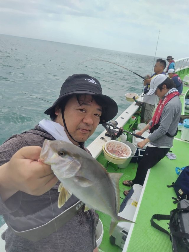1.20kg 合計1匹 クロダイ 0.80~1.50kg 0~6匹 ワカシ 20~33cm 10~20匹 ショゴ 28~35cm 0~3匹 カツオ 0.80kg 合計1匹 本日もご乗船頂きありがとうございました^o^今日は五目で出船しました。朝は近場からやりましたベイトの反応あるからやるがイワシが釣れるだけで他が釣れない(;;)でも反応あるしアタリはあるらしいので粘ると段々と釣れ初めダブルでも釣れる状態にその後もタイ狙うと、タイのおじさんがバタバタと5匹釣り、ポイント変えて1匹の6匹と楽しんでましたね!ルアーのかたはワカシ、ショゴ、ヒラメ、カツオをgetしてはやり?の膝乗せしてました(^^)他の方も1日アタリは有り遊ばせて貰えましたよー♪いろいろと釣れてますので面白いですよ。土曜日は残り枠④、日曜日はまだ空いてますのでチャレンジャーお待ちしてます☆