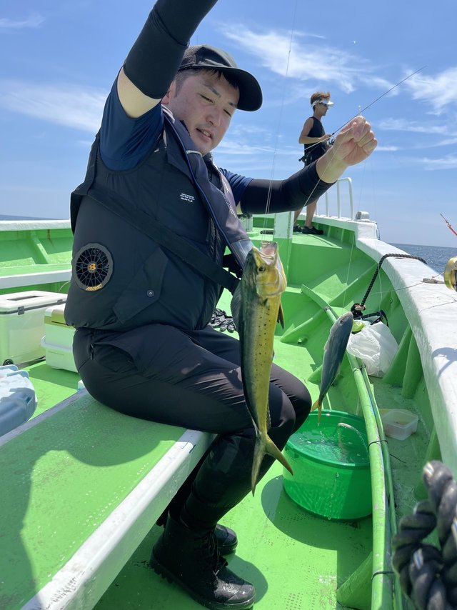 1.20kg 合計1匹 アジ 15~32cm 0~20匹 イナダ 28~35cm 0~10匹 本日も暑い中、ご乗船ありがとうございました。 今日は、3隻出船しました。 アジ、ワカシイナダや、クロダイ、ヒラメ、カンパチ、モクアジ、ホウボウ、オオモンハタ、ソーダ、カイワリ、イトヨリ、カマス、シイラ、サバ、カサゴ、イサキなど! 魚種多彩でした!