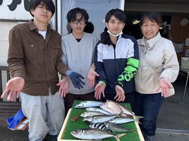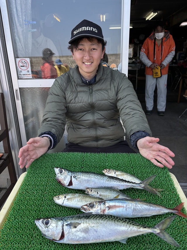 3.60kg 合計1匹 アジ 20~35cm 1~20匹 本日もご乗船ありがとうございました。 今日は2隻出船しました。 アジがポツポツと、大型、中型、小ぶりなど、 泳がせで、ヒラメ1尾3.6キロ。 他、コショウダイ、クロダイ、イラ、イシダイ、アマダイ、ハナダイ、トラギス、サバ。