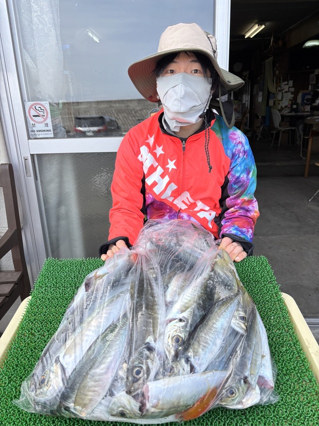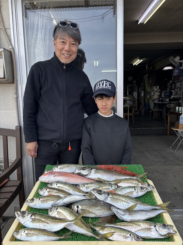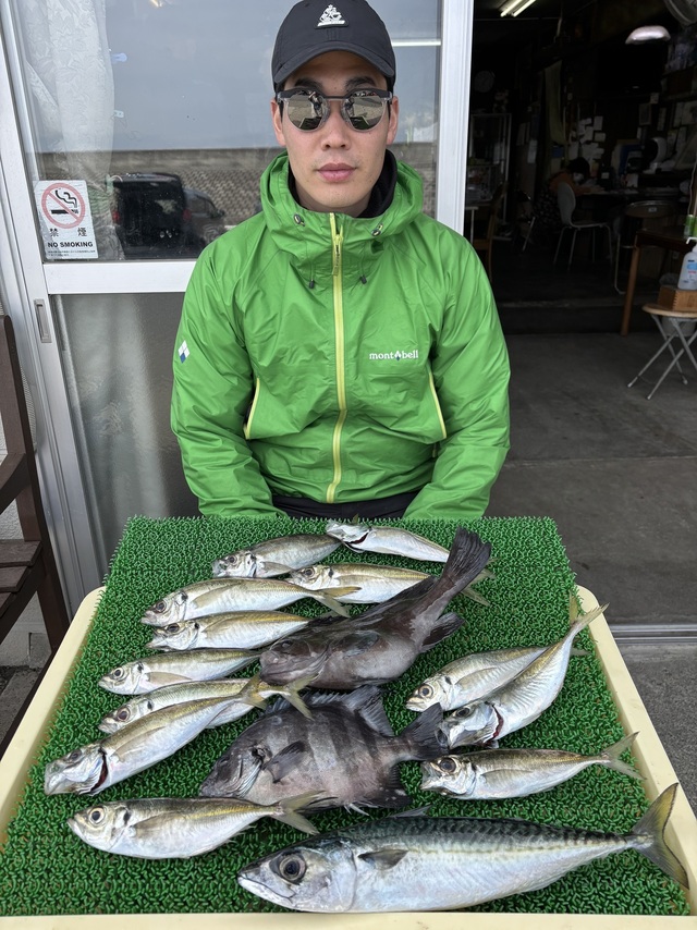 2.80kg 合計1匹 アジ 20~34cm 6~40匹 本日もご乗船ありがとうございました。 今日は2隻出船しました。 アジ中心に、初めての方々も、いいお土産になりました! 他、ヒラメ2.8キロ、イシダイ、アマダイ、カイワリ、オオモンハタ、サバ、アカボラ、カナガシラなども