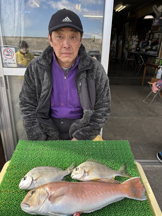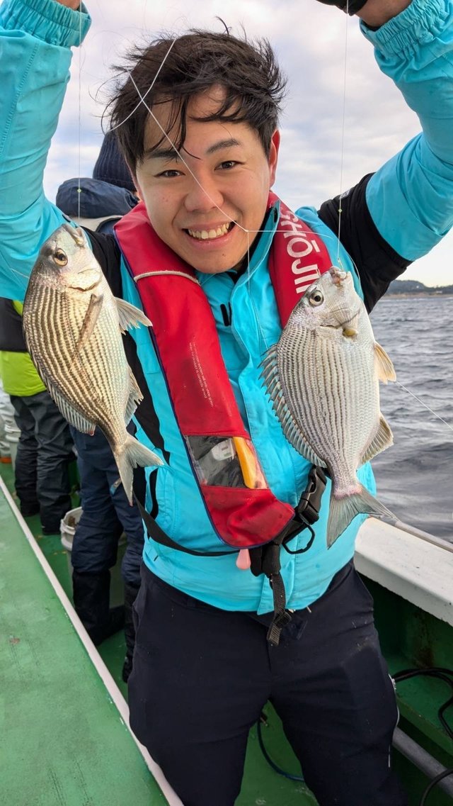 アジ 15~26cm 10~103匹 クロダイ イシモチ あけましておめでとうございます♪本年度もよろしくお願いしますm(__)m。 2025年1月3日の金曜日もLTショートアジ船の出船ができました~(^^)。 新年よりお越しになられた初釣りの皆さま、誠にありがとうございましたm(__)m。 朝からグレーの曇り空で冷たい空模様でしたが、後半から青空と日差しも出て良いお天気になりました♪(^^)。 海上は北東の風が少し吹いてチョイボチャしておりました。 そんな本日も、いつもの赤灯沖のポイントで前半に15~20㌢の小ぶりが主体ながらポツポツとシグナルが続き、数が伸びました~(^o^)v♪。 トップはエースがダントツの103尾♪(^^)、二番手55尾、三番手51尾、四番手36尾、五番手34尾、六番手33尾、七番手29尾でした♪。 明日の1月4日土曜日も出船が確定しております♪(^^)。