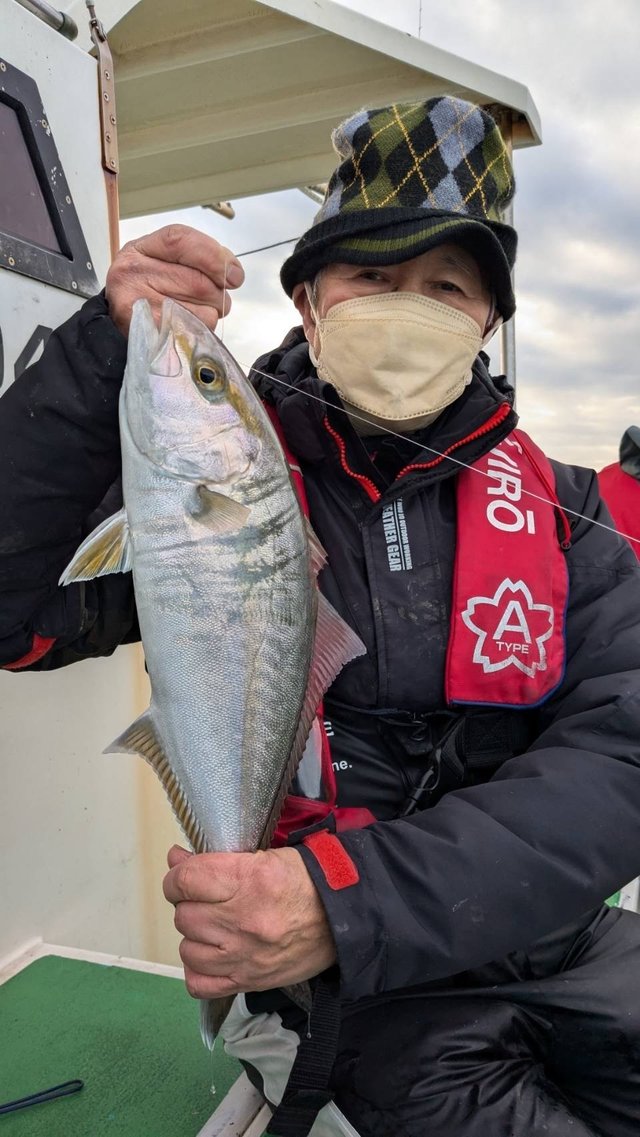 合計5匹 アジ 15~25cm 31~116匹 2025年1月4日の土曜日もLTショートアジ船の出船ができました~(^^)。 新年よりお越しになられた初釣りの皆さま、誠にありがとうございましたm(__)m。 晴れて青空が映える良いお天気♪しかし北東の風が少し強く吹いていて思いのほか、ボチャボチャな海上でした(^^;)。 そんな本日も、いつもの赤灯沖のポイントで前半に15~20㌢の小ぶりが主体ながらポツポツとシグナルが続き数が伸び、 スペシャルゲストも釣れました♪(^o^)v。 トップは116尾♪、二番手95尾、三番手91尾、四番手90尾、五番手81尾でした♪。