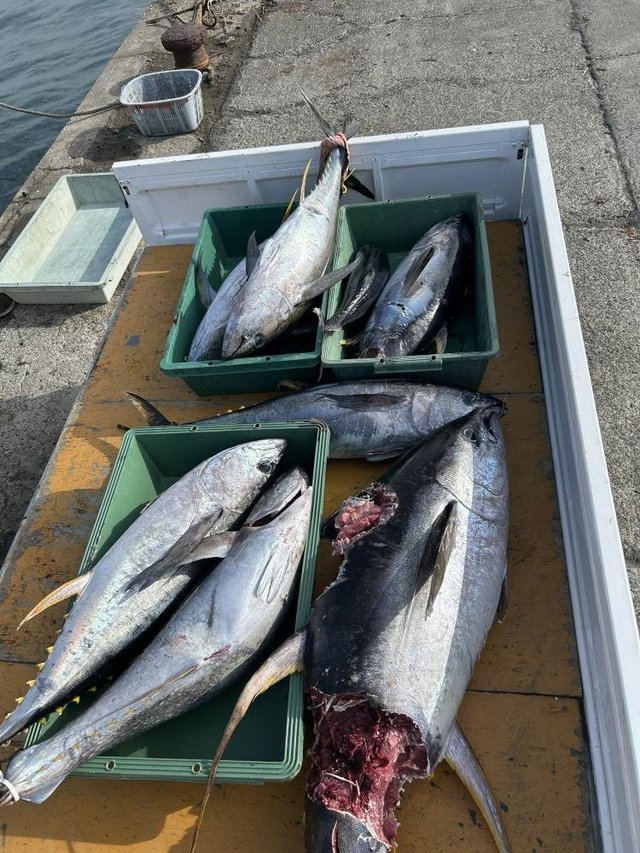 1.60~1.60kg 0~1匹 イナダ 38~49cm 0~7匹 ワラサ 3.40~3.40kg 0~1匹 キハダ 40.70~54.20kg 0~2匹 ホンガツオ 1.60~3.00kg 2~6匹 ライト五目(イナダ・カンパチ)船。LT泳がせ&喰わせサビキ船。本ガツオ/キハダ船。