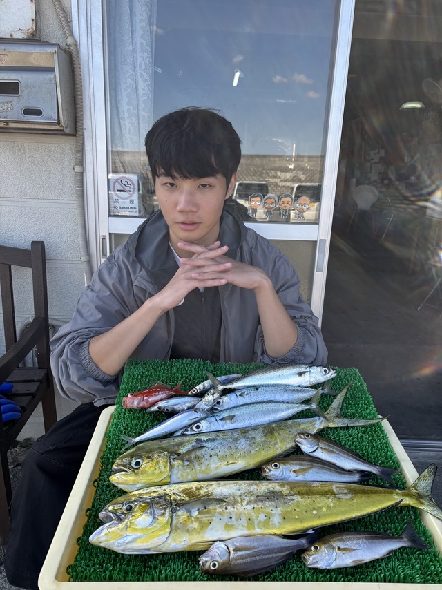 0.70~1.90kg 0~1匹 アジ 20~30cm 3~26匹 マダイ 0.90kg 合計1匹 本日もご乗船ありがとうございました。 アジ中心でしたが、中型サイズばかりでした! ヒラメは、船中3尾、イシダイ、イナダ、カイワリ、アマダイ、イトヨリ、ハナダイ、サバなどがまじりました。 仕立て船では、なんと9.5キロのブリ! 明日は、お電話にてお問い合わせください。