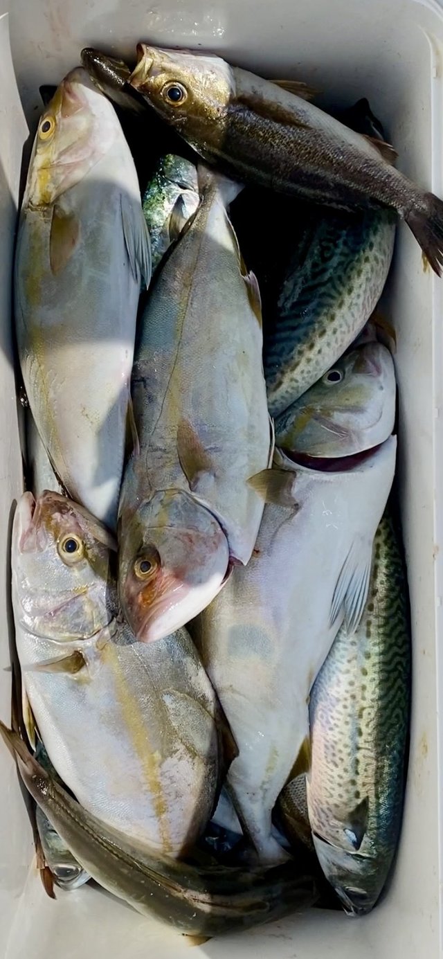30~38cm 0~4匹 カンパチ 28~45cm 2~10匹 ワカシ 28~38cm 1~6匹 イサキ 17~28cm 0~6匹 LT五目船 小アジ、サバ 青物が当たりよくなってきて今後楽しみです!イナダ仕掛け、食わせサビキ、泳がせ仕掛けなど用意してください!