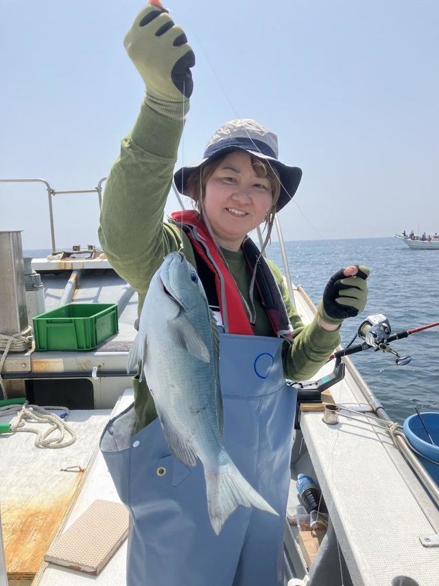 (ウマヅラハギ)マダイ 最大1.75kg 0~1匹 アジ メジナ サバ クロムツ 0~1枚1.75kg 外道大アジ・メジナ・ウマズラ・サバ・クロムツ 佐島沖40~70m 今日は、南風が朝からそよそよ吹いて暖かい釣り日でしたが 早めに、南西の風が吹いてきて、45分早帰りになりました。 今日は釣れるか心配でしたが、何とかオカズは、釣れました(^-^) 乗船ありがとうございました。お疲れ様でした。 S様真鯛1.75kg高級サイズ釣れました(*^-^*) 大アジも、大きかったです