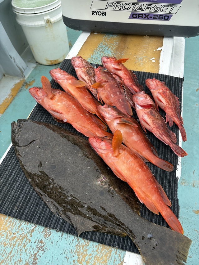 マダイ ハナダイ イサキ アジ ヒラメ キジハタ メバル カイワリ カサゴ コマセ五目、泳がせに出船しました マダイ、 ハナダイ、 イサキ、 アジ、 ヒラメ、 キジハタ、 アカハタ、 メバル、 カイワリ、 カサゴ でした。