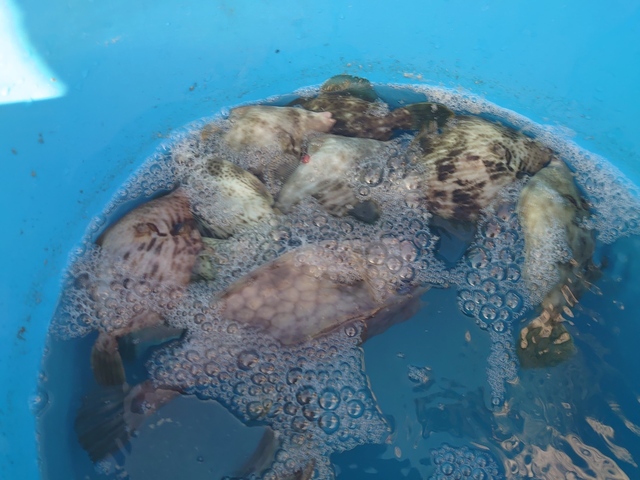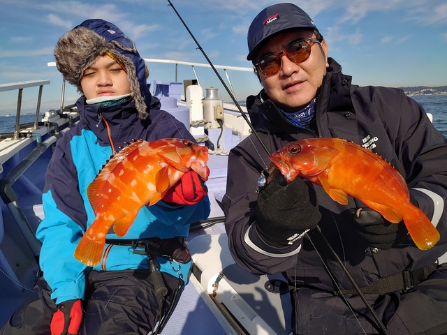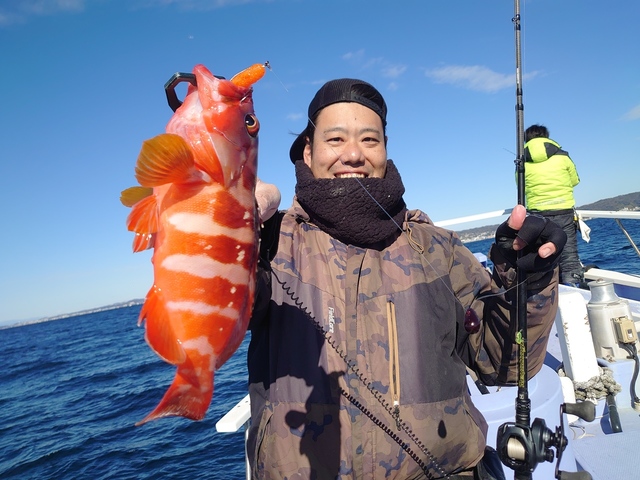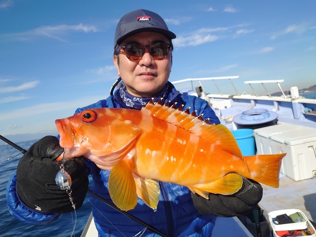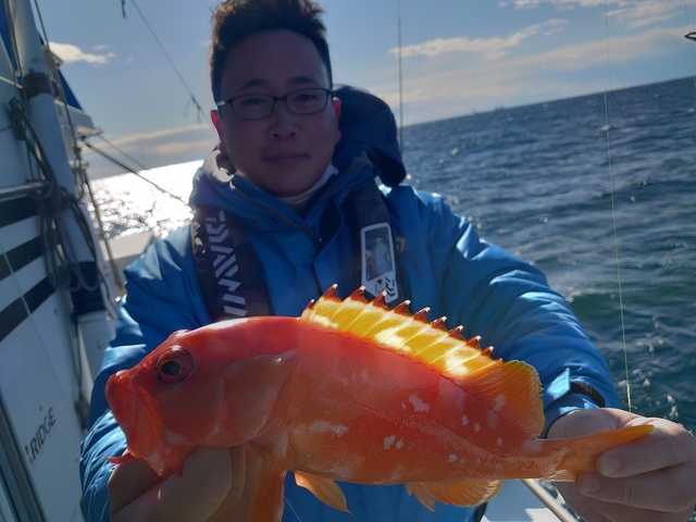 午前船アカハタ、カサゴ。 うねり高く好ポイントへ入れず。