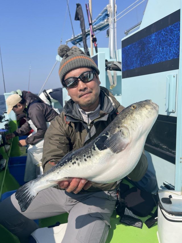 1.30~3.40kg 0~3匹 虎フグ船。3匹2名。朝から帰りまでアッチコッチに反応アリ‼︎ 見分けが難しい感じの反応だったので、ハズレ反応は空振り。アタリ反応は必ず連発ヒット。 巻きバラシも多かったけど、いつもよりは良い感じに釣れて、デカ白子入り揃いでした。