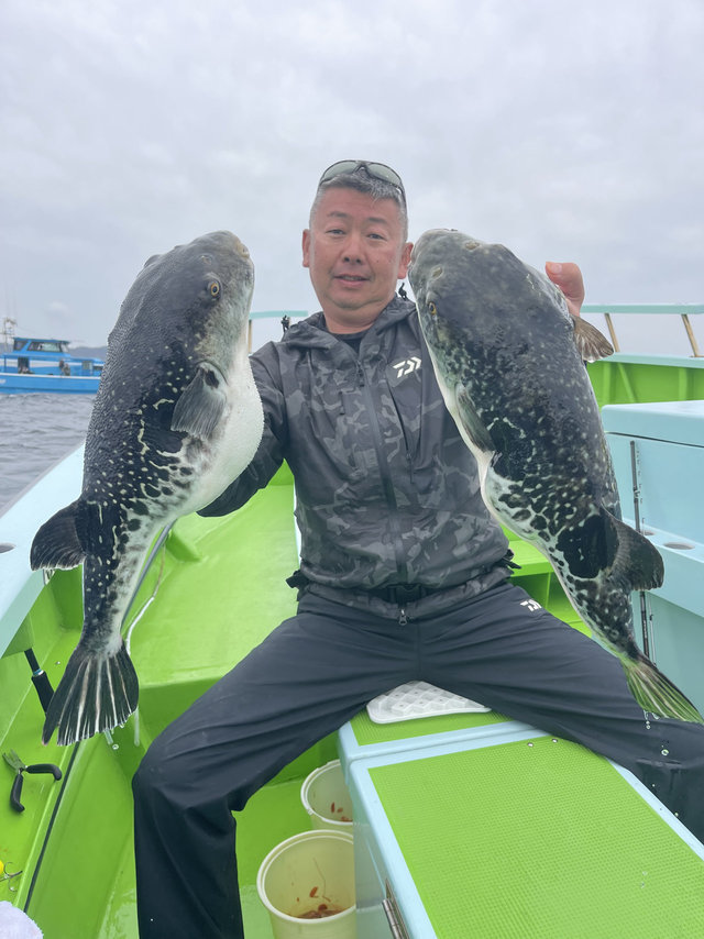 ショウサイフグ コモンフグ 21名、0〜7匹、20〜42cm。 ショウサイ主体、デカコモン数匹、トラフグ多数混じり。