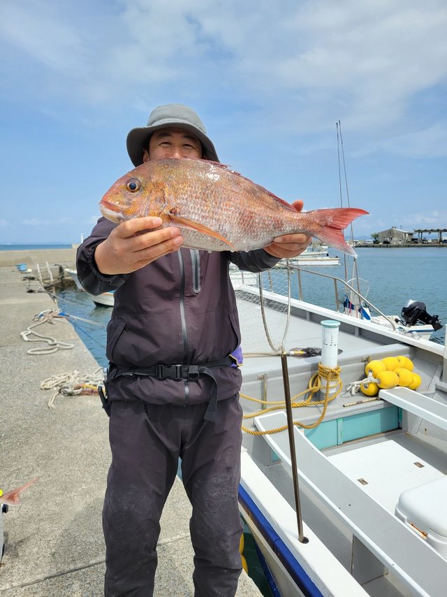 マダイ 0.40~1.50kg 0~7匹 ヒラメ カンパチ ホウボウ カサゴ タイ(ひとつテンヤ)船。タイラバ&ひとつテンヤ船お客様14名で出船しました。前半は船中2枚と苦戦でしたが上潮になった後半は2〜3連発ヒットもありトップは11回ヒットの7枚ゲットの船中21枚でした!外道もヒラメ、カンパチ、ホウボウ、カサゴ、トラフグと多彩でした!