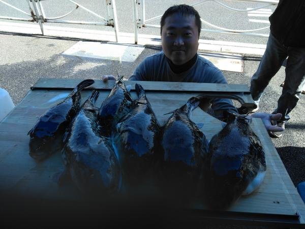 ショウサイフグ ヒガンフグ 13名、0〜6匹、22〜38cm。残念0は1名。