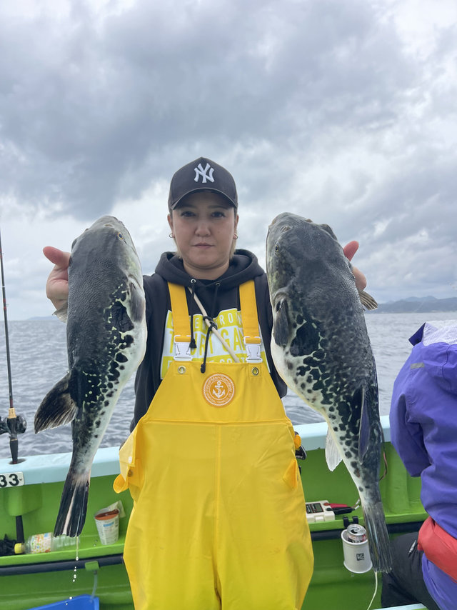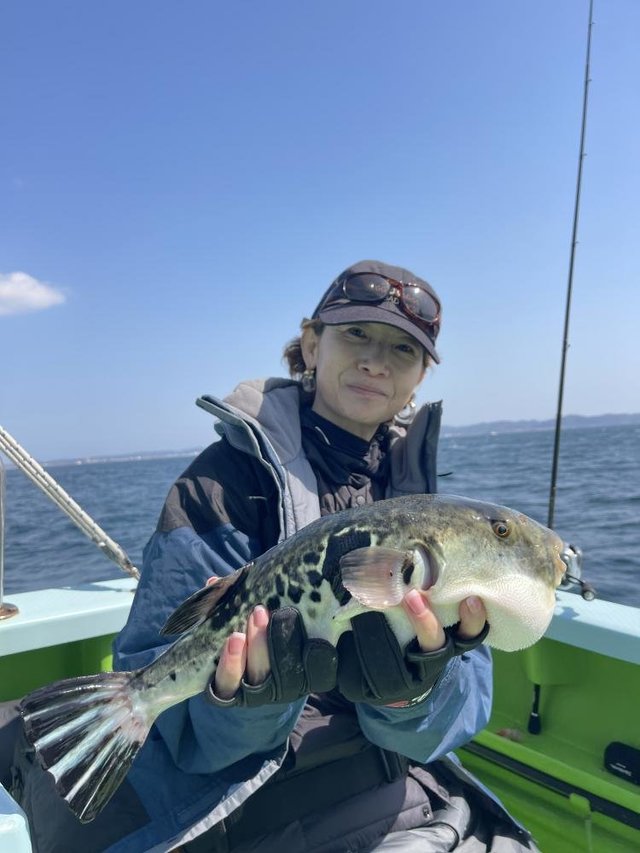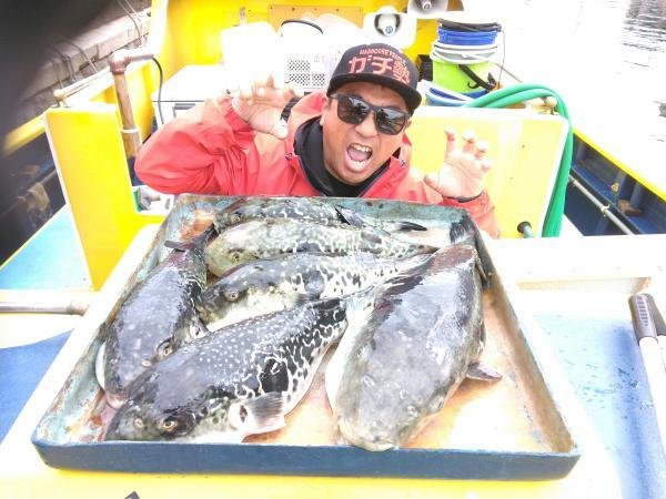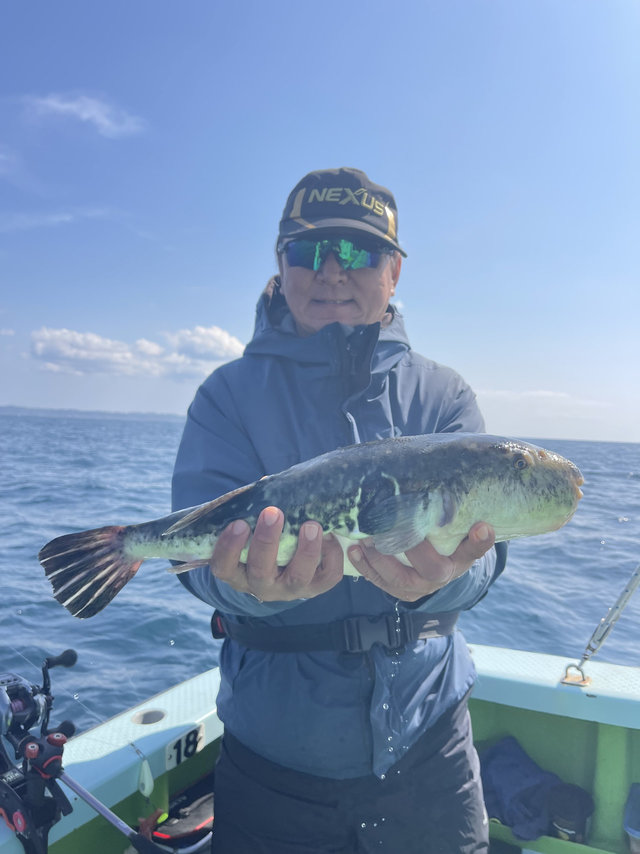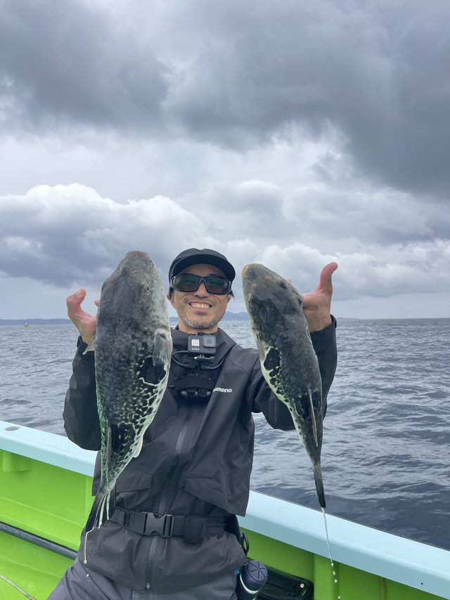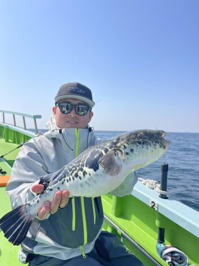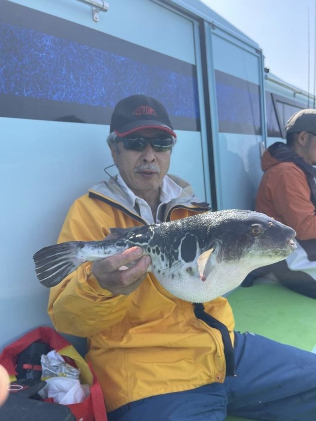 (トラフグ)0~1匹 フグ フグ コモンフグ フグ船。15-40cm1-50匹。 ショウサイフグ。アカメフグ。コモンフグ。3種混合釣果にトラフグ1匹混じり。 コモンフグ主体にショウサイフグとアカメフグ混じりでポツポツからたまに連発‼︎ アカメフグゾーンでは、昨日同様に中型主体でポツリポツリと釣れました。