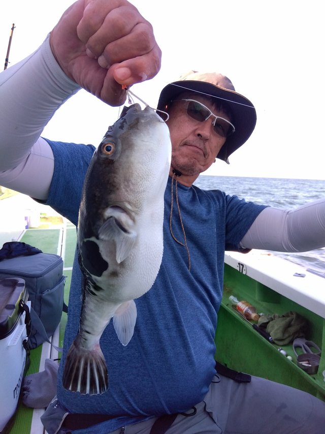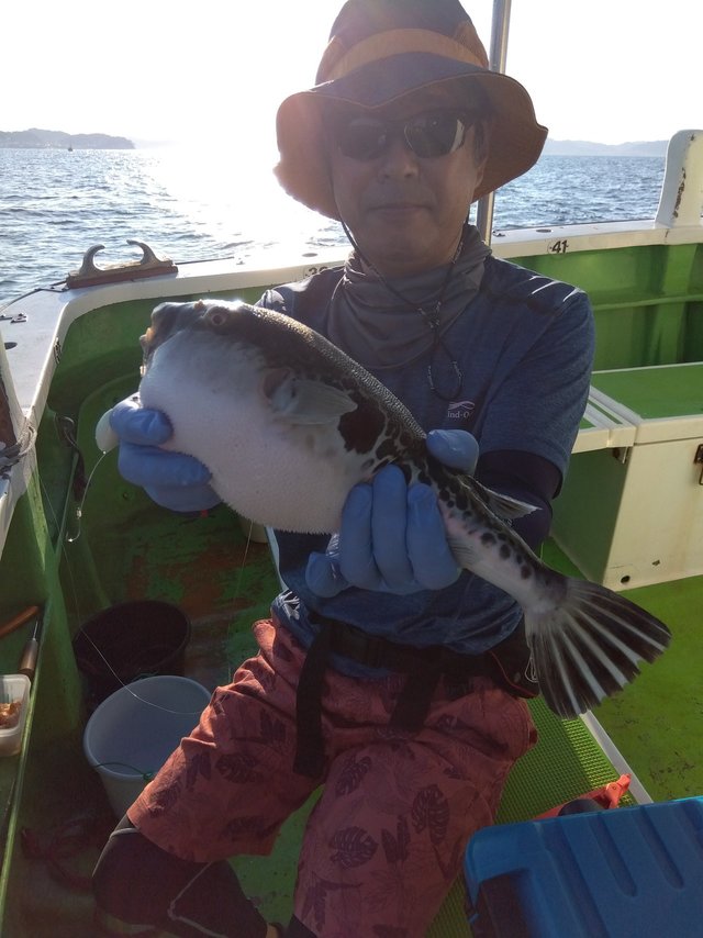 最大1.00kg フグ 20~38cm 0~10匹 フグ船。トップ10匹、2番手8匹。白子持ち極旨ショウサイフグ専門。朝一のレクチャーと釣り中のアドバイスして、初心者初挑戦の方中心でしたが、ユルユル潮と速潮を皆さん上手く対応してくれ最後まで頑張ってくれました。ショウサイフグは中型大型主体。 釣果には入れないけど安心安全に食べれるシロサバフグもポツポツ。 1キロくらいのトラフグ数匹。