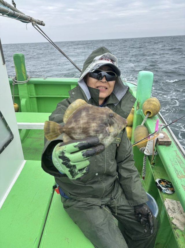 カワハギ 16~27cm 0~8匹 アカハタ イシダイ 今日は最高のベタ凪釣行でした。 私はご指名いただき仕立船を 担当させて頂きました! ほぼビギナー様チームで ベタ凪だったのでクルージングも 楽しめました。 数はなかなか伸びませんでしたが 大型も顔を出してくれて 27.0cm、26.5cm、26.0cmと 分厚く肝パンハギをゲット! また水温が上がってしまったこともあり 生体反応は非常に多く 特にキタマクラは大量発生。 乗合船の方では2キロほどのマダイをゲット。 ただ砂地のポイントは 全く生体反応なく エサも残ってくる状態。 潮流れが止まってくると 我慢の時間帯に。 カワハギプロフェッショナルチームだと 色々に引き出しがあり アタリを出すことができるのかもしれませんが ビギナー様チームだったので アタリがないとポカポカ陽気で アクビが止まらなくなってしまうので 大きくポイント変更! すると潮も早いくらい流れていて 生体反応も発見。 それまでキタマクラパーティだった お客様もしれっと26.5cmをゲット。 レクチャーの際に 「とにかくバレるので魚はすぐに船に取り込んでください!」 と言ったのを皆さん実践してくれて 取り込みも豪快!!!!!! 取り込んでからカワハギのサイズを確認して 「え、でか!!!!!!」 なんて言ってました。 そんなこんなで終了時間を迎えました。 飛び抜けた枚数とはなりませんでしたが 1日ワイワイ楽しめました。 明日も頑張りましょう! ありがとうございます。水色澄み。