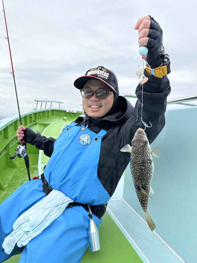 コモンフグ アカメフグ ※※ご希望の方には船長がレクチャーいたしますので、お声がけください♪♪※※ ※かっとう10号とくわせ針を場所により使い分けます。場所によってはかっとう禁止の場合があります。 ※くわせ針のみで釣りをする場合は動付きのようにやりますのでオモリは15号を使います。 詳細と釣果写真は『ぎょさんブログ(さとし船長の釣り日記ブログ)』に随時アップしております♪ ショウサイフグの処理について⇒身・白子のみのお渡しとなります。 サバフグとクサフグについて⇒さばき処理はしないため海に逃がしてください。