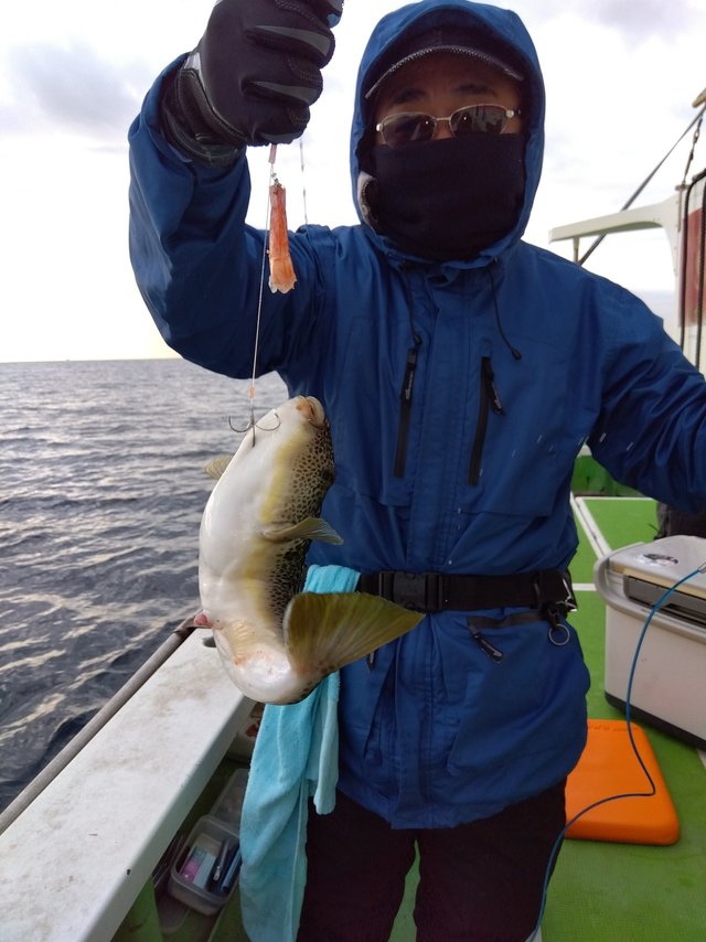 (ショウサイフグ)フグ 最大51cm フグ船。期間限定。極旨ショウサイフグ&トラフグ両方狙い贅沢釣り‼︎23-51cm、0-7匹。 2番手6匹。最大はトラフグ。太りすぎ極旨ショウサイフグ中型主体にポツリポツリと地味な釣れ方ですが、昨日同様に潮無し風無しの状況でしたが、アタリ数は多少増えて掛け損ないもあり。 小型トラフグ混じりで、今日は3キロクラスのデカ白子持ちのデカトラも釣れました‼︎