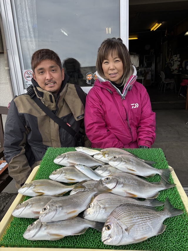23~30cm 0~15匹 ヒラメ 0.75~1.00kg 0~1匹 アジ 13~20cm 3~15匹 イシダイ 1.10kg 合計1匹 ワラサ 5.20kg 合計1匹 本日もご乗船ありがとうございました。 ワラサ5.2キロや ヒラメは船中2尾、 ヘダイは、トップ10尾以上。 五目が初めての方、マダイゲットしたりと、 他、イシダイ、アジ、イトヨリ、アマダイ、カサゴ、サバ、カイワリなどもまじりました! 来年もよろしくお願いします。