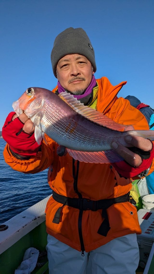 1~5匹 アジ カサゴ アマダイ 2~6匹 シロアマダイ 最大43cm オニカサゴ カイワリ イトヨリ 2号船釣果☆ 本日は、五目とアマダイ船で 出船しました。 天候晴れ。 風北〜南。 潮東へ流れる。 朝9時まで、五目狙い。 ヘダイ、1〜5匹。 アジ、カサゴ、等が釣れました。 9時より、アマダイ狙いに変更。 アマダイ、2〜6。 白アマダイ43cm。 一荷もあり、 40cm級3枚。 オニカサゴ、カイワリ、イトヨリ、大アジ。 等が釣り、まずまずの1日となりました。 今年も残りあと僅かですね。本日も、ご来店頂いたお客様と天候に感謝です。