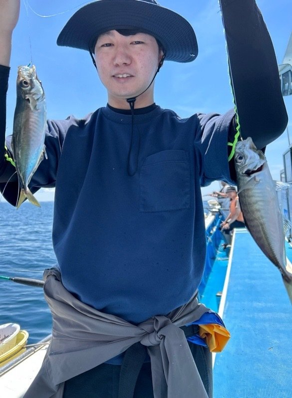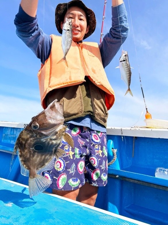 (ウルメイワシ)マサバ アジ 今日は豚サバフラッシャー仕立てでのチャレンジでした、豚サバは混じった程度、でもマサバと大アジとウルメでお土産にはなりました、キハダが跳ね出したら反応無くなってしまいました、写真撮り忘れすみません