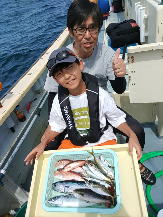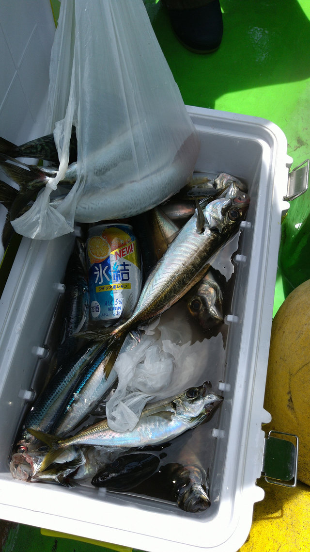 (ウルメイワシ)マサバ ゴマサバ アジ 今日は豚サバフラッシャー乗り合いでのチャレンジでした、今日は豚サバとギリギリ呼べるサイズは混ざりました、後はゴマとアジとウルメでどうにかお土産に