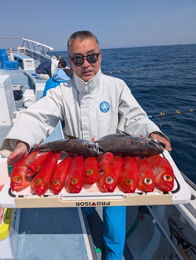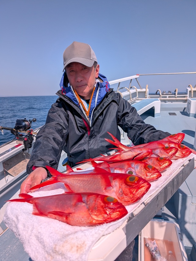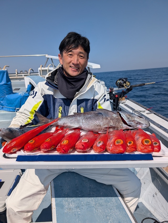 29~38cm 4~15匹 クロムツ 34~60cm 1~9匹 本日ご乗船の皆様お疲れ様でした シケ明け!凪良く、良型キンメダイ・デカクロムツ主体にいい反応みさせてもらい、今日はレンタルの方がほんとんどでしたが・・・皆様お土産キープできました!! ★明日も出船確定しております 宜しくお願いします ★明後日(日)はまだまだ空席あります 皆様のご乗船お待ちしております