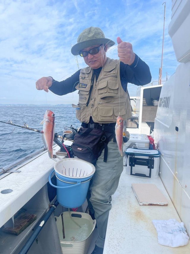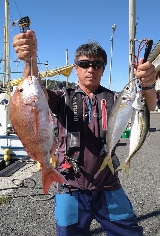 マダイ船。 潮色と流れ:澄みゆるい。 風向きと強さ:南ほどほど。 波高:0.5-1.0M。 別船マダイ・0.8-3kg、2-3枚。竿頭:蓑田さん。 別船アジの泳がせ釣り竿頭:中田さん。 いつもご覧いただきありがとうございます! 真鯛好釣、大型は3kg!数はトップ7枚、多数の真鯛が釣れています! 逃げてしまった大型ヒットもあります。 剣崎沖では3-5kg級の真鯛が釣れていて、今後も大型真鯛ゲットのチャンスがありそうです! 真鯛のヒット数もマシマシ! 1-2kgも釣れていてイナダや黒鯛などの嬉しいゲストも登場! アジ釣りは爆釣モード! 大魚群が入ってきています。 アジ船は多数のヒットで早上がり、トップ50匹! 泳がせ狙いではヒラメが登場! 連日のヒラメちゃんですね(^^)今日は45cm! アジは泳がせ向きのサイズから40-50cm近くある大型アジも混じります。 リクエスト乗合の日程。 ・3月24日真鯛乗合。 ・3月25日真鯛乗合。 ・3月26日真鯛乗合。 ・3月27日真鯛乗合。 ・3月27日カワハギ乗合。 ・3月28日真鯛乗合。 ・3月30日真鯛乗合。 ・3月31日真鯛乗合。 ・4月1日真鯛乗合。 ・4月4日真鯛乗合。 ・4月5日真鯛乗合。 ・4月6日真鯛乗合。 ・4月7日真鯛乗合。 ・4月14日真鯛乗合。 ・4月30日真鯛乗合。