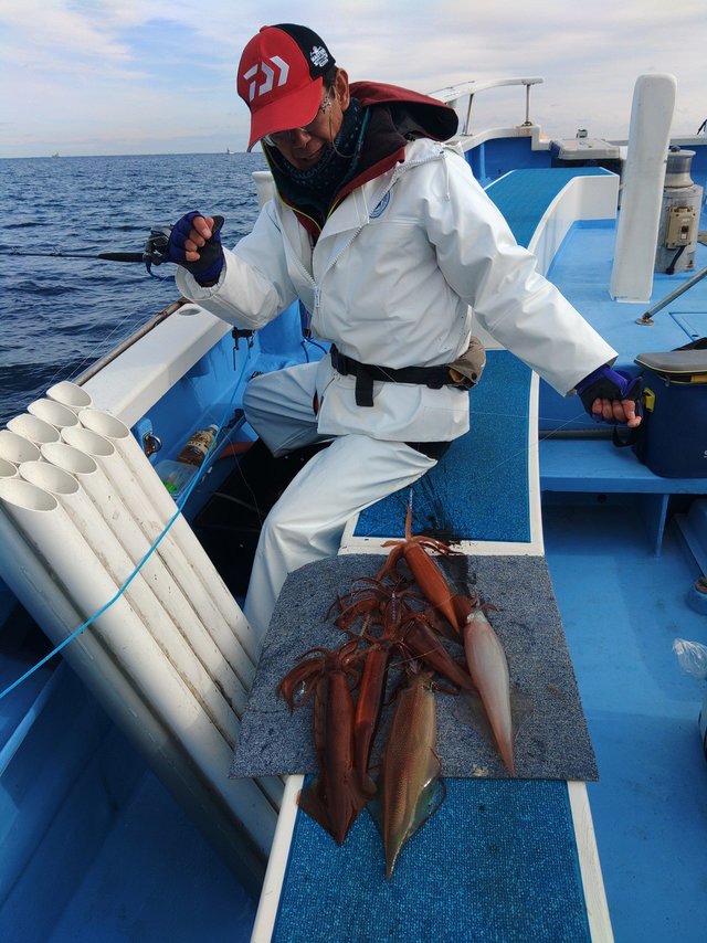 25~45cm 0~15匹 本日から開始致しました。大型1号で出船し洲崎~城ヶ島沖160~200m前後を攻めました。終日ヤリイカ、スルメ交じりポツポツとノリました!トップは15杯!今後に期待です! オモリは150号 プラヅノ ヤリイカ11~14cm スルメ14~18cm 幅広くご用意お願いします。 投入器は船にあります。 ※ダブルカンナ、ビーズの仕掛はオマツリしても外れません。ご使用控え下さい。羽根付きのオモリもご遠慮下さい。