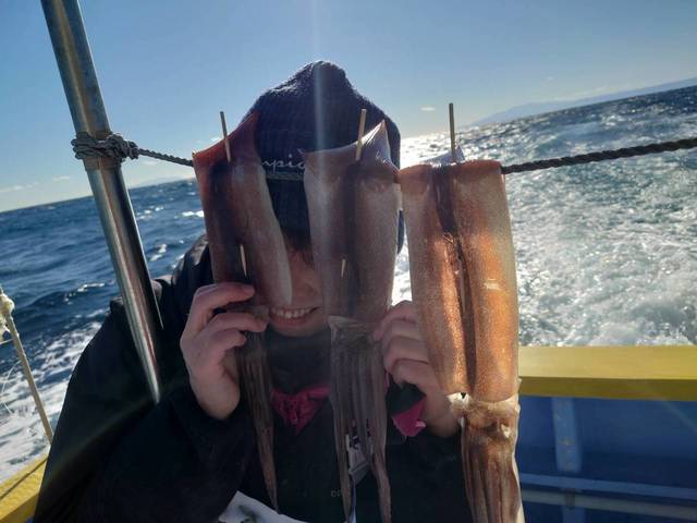 30~41cm 2~6匹 ★ヤリイカ船(27号船):パッとせず数が伸びませんでした、スルメ半分のヤリイカ2~6杯。