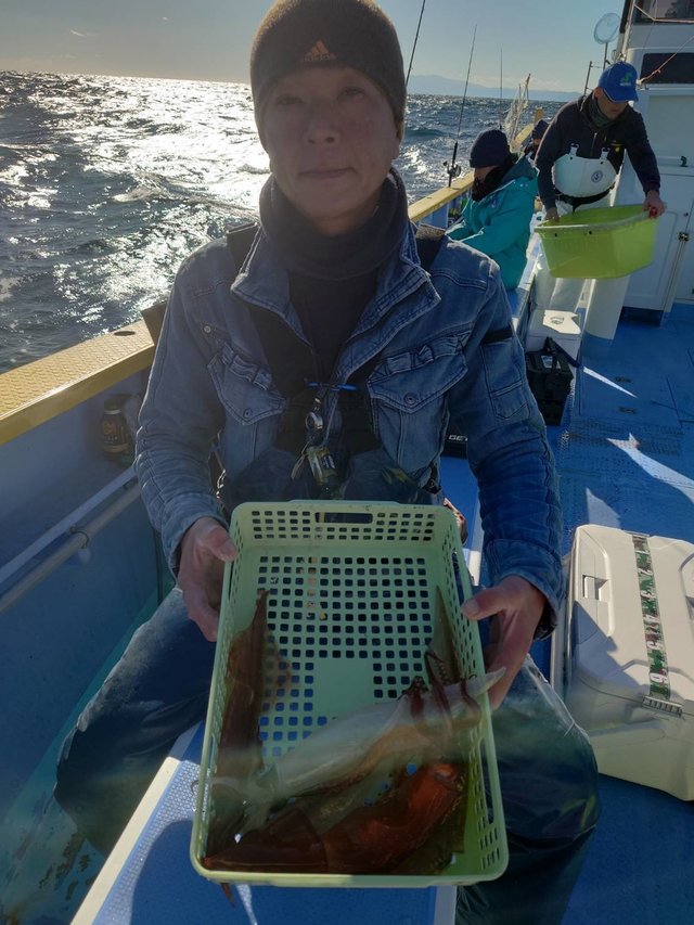 朝イチ、洲崎沖に直行。 潮が速いため、剣崎沖に移動。 3~4杯掛け、ありました。 スルメイカは、混じった程度でした。 おつかれさまでした。 ありがとうございました。