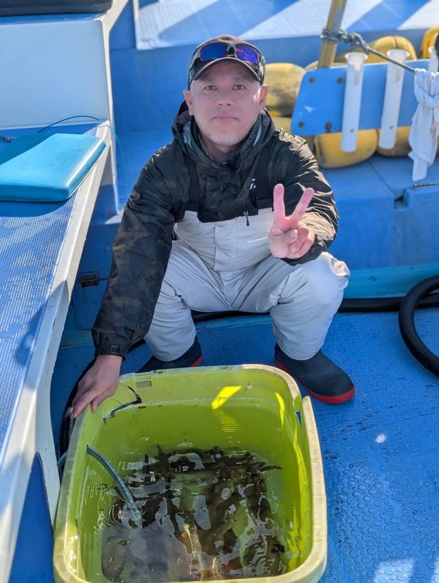 25~45cm 4~24匹 本日より開始しました! 剱崎沖150~180mを攻めました。1日を通してヤリイカ主体でポツポツとノリました。最高5点掛けなどあり盛り上がる場面もありました!トップは22杯!スルメも交じりました。 プラヅノヤリイカ11~14cm スルメ14~18cm サバが多い時間帯は直結有利です。 色々とご用意下さい。 オモリ150号 投入器は船にあります。 ※ダブルカンナ、ビーズの仕掛はオマツリしても外れません。ご使用控え下さい。羽根付き&しずく型のオモリもご遠慮下さい。 ※最新のリールは船電源と相性が悪く使えない場合があります。なるべくバッテリーは持参するようお願いします。