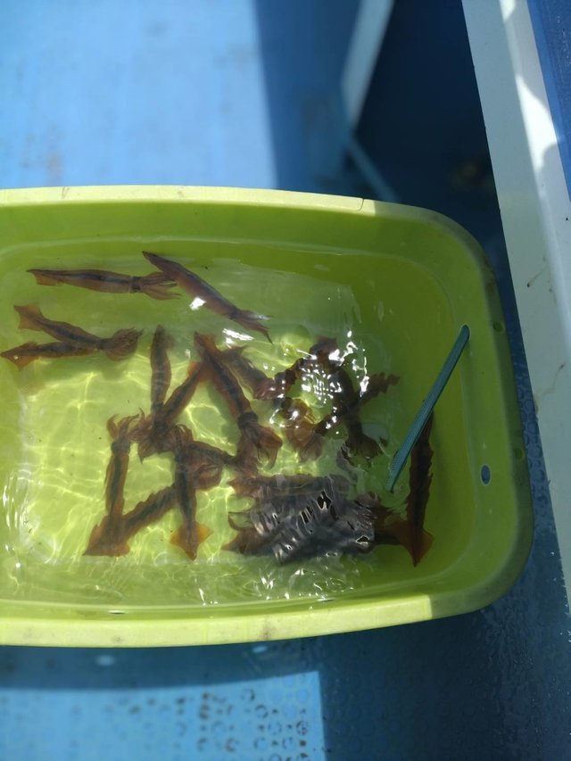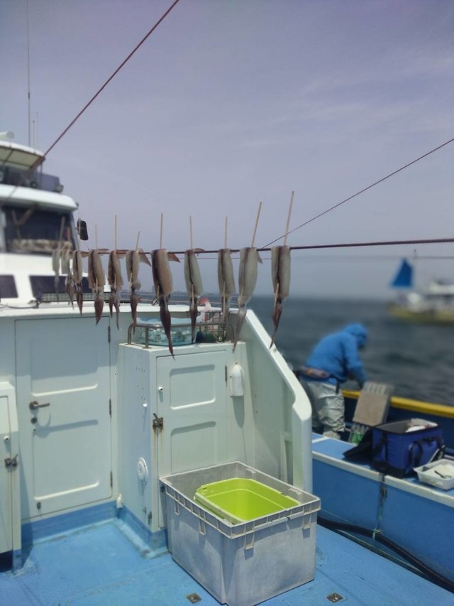 (スルメイカ)15~29cm 5~40匹 マルイカ船。40続いて39杯前半はなかなか反応見付からず苦戦。後半反応見させてもらい捕まると全員巻きなんかもありました。 20杯前後の方多数でお土産出来ました!