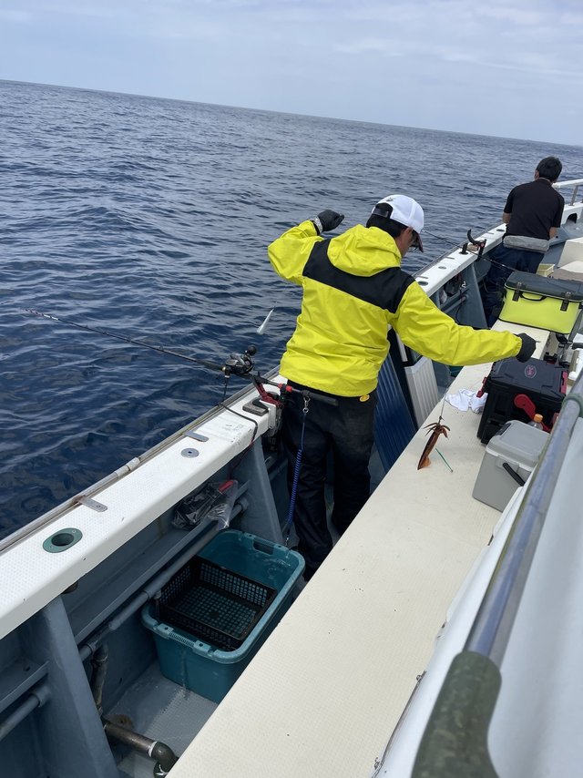 今日はスルメイカ船で出船しました。 朝一、1投目から皆さんスルメイカGET。朝はノリノリ状態でした。 中盤は渋く苦戦しましたが、帰り際に4点がけ等ありました。スルメイカ全員GET。 スルメイカ貸し竿さん含め皆さんお土産になりました。 本日もありがとうございました。