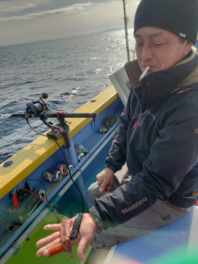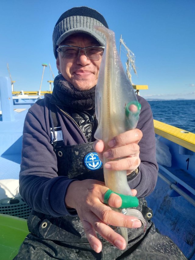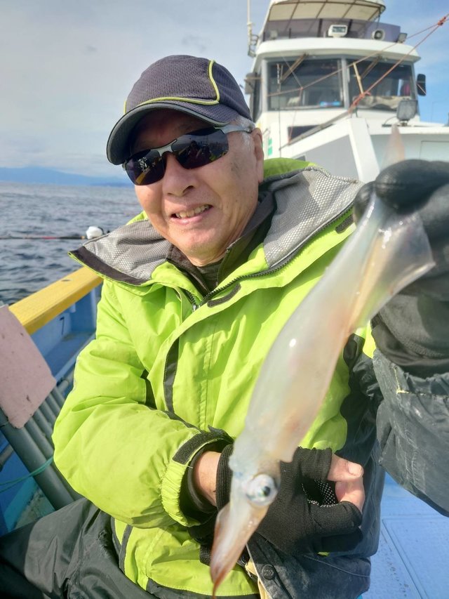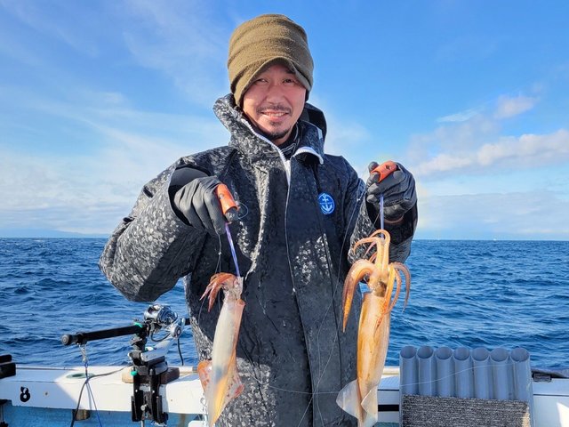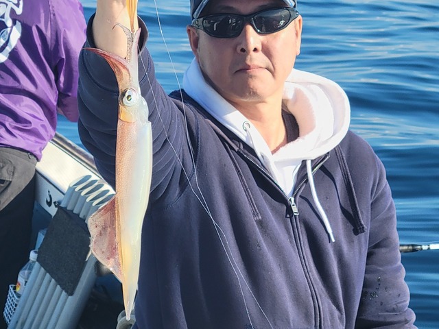 30~40cm 0~7匹 新年明けましておめでとうございます。 2025年初出、穏やかな陽気に恵まれ通常通り行ってきました。 11名様乗船、丁度良い人数でしたので多少の速潮覚悟で沖ノ瀬向け直行してみました。 上潮が約2ノット、釣り始めて糸に合わせると約1.5ノット、潮目は極端に悪くはなく、忙しい釣りとなってしまいますが1回旋回で操業可能。 反応は見えていて繰り返し流し変え、肝心のイカの乗りは、何ともつかみどころのない1日。 1回の流しで乗っても1名か2名、3杯掛けが4回、4杯掛けが1回あったのですが、それぞれ違う流しに違う方がといった具合。 7杯が2名、5杯が5名、3杯、1杯にボウズの方2名です。 明日もナギ予報で出船確定、今年も1年よろしくお願いします。
