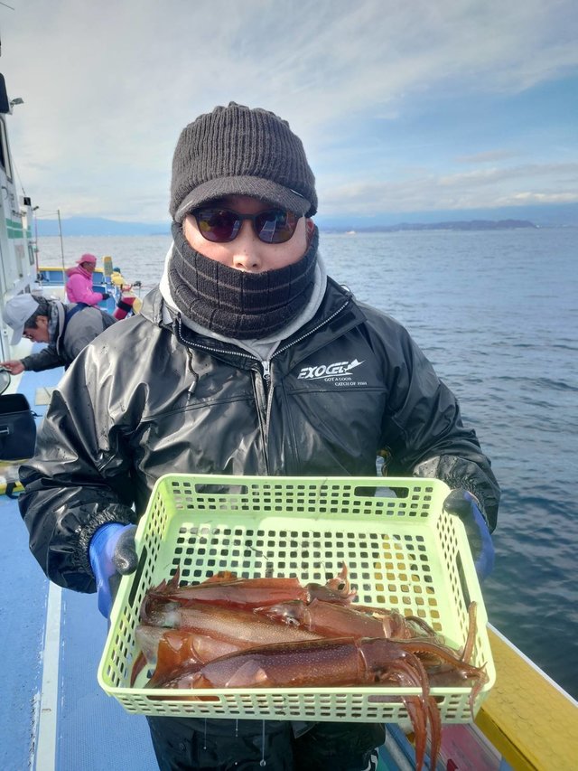 30~40cm 0~7匹 ヤリイカ 25~40cm 0~2匹 今年最後の出船となりました。 あまりにも不甲斐ない釣果を続けてしまい、今日は覚悟を決めて激流に挑みました。 沖ノ瀬向け直行、1回旋回で対応していくつもりでしたが、全く歯が立たず。 イカの乗りそのものも悪く、反応も少な目、大群ではない群れの中に仕掛けを入れていくのは難しく、流し変えの度に拾えるイカは僅か。 今日は洲崎沖の東寄りまで速い潮が差し込んで来てしまっていて、逃げ場がありませんのでしばらく我慢。 どうにか全員が型だけでもとの思いで粘りましたが、11時頃で限界。 城ヶ島沖で数杯拾えて終了です。 今年も一年お付き合い下さりありがとうございました。 相変わらず不器用で気の利いた営業トークなどできない船長です。 イカを探す事しかできませんが、来年もよろしくお願いします。 新年は2日より営業となります。 皆様、良いお年をお迎え下さいませ。