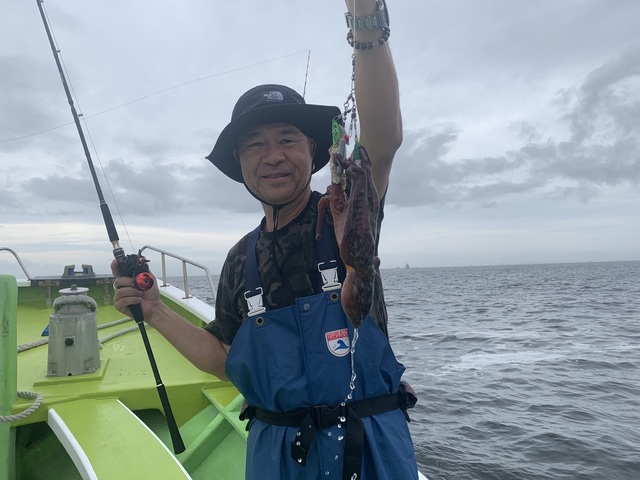 (マダコ)オクトパッシング(タコエギゲーム)で出船! 今回は超ミラクル~~。 釣り経験数回というビギナーのお客様がタコエギゲーム初挑戦、先ずはレンタルタックルでロッドの握り方~クラッチの切り方など....釣り方までレクチャーして、いざ実釣開始!!! すると、開始早々3.0㎏越えの大タコキャッチ~~。 そして、もう一方のお客様も初挑戦で3.0㎏超えの大タコキャッチ~~。 更に2.0㎏クラスも追加してとにかくお祭り騒ぎの今便、 私も大汗かきました。