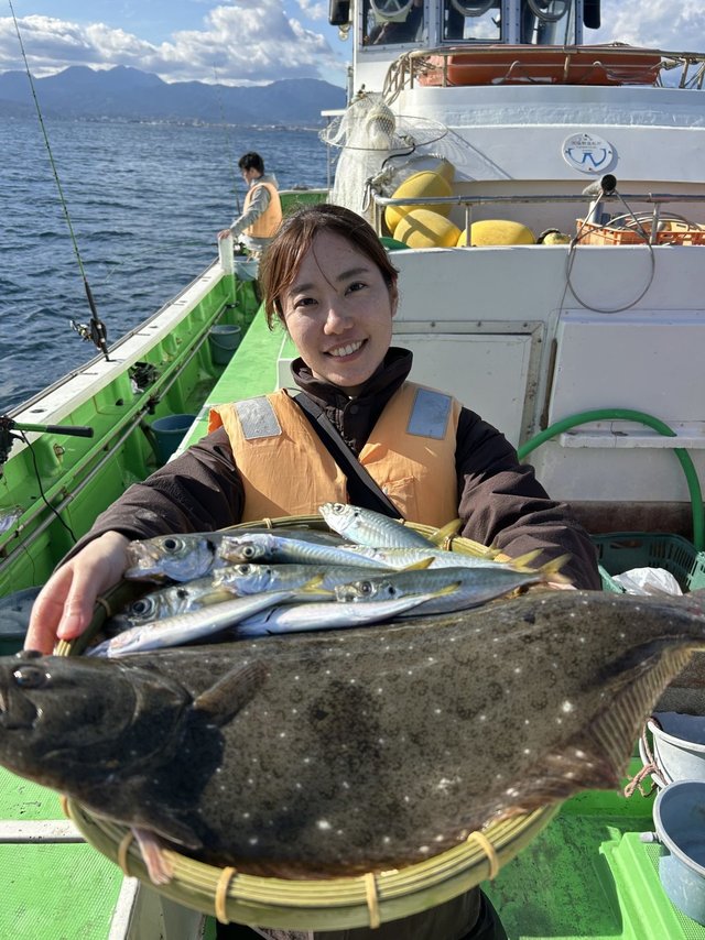 アジ ヒラメ 午後ライトウィリー五目乗合船。 18~30匹15~52匹(アジ船と便乗) 他根魚。