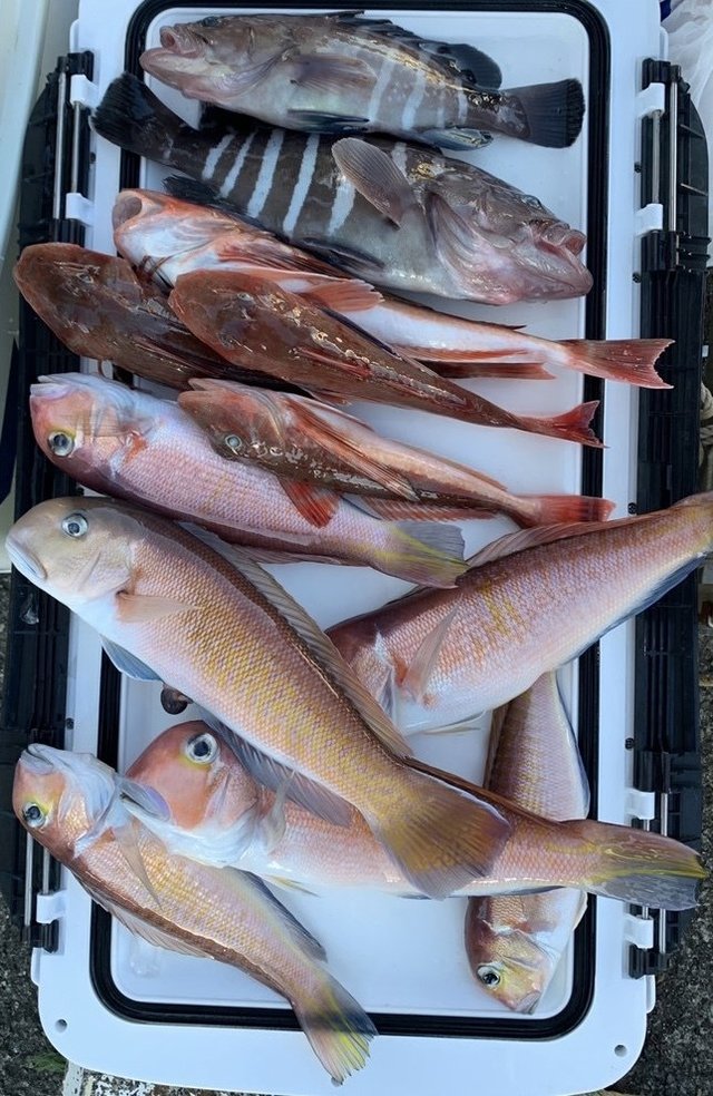 本日もご乗船ありがとうございました。 アジは、小ぶりでしたが、 マダイや、イシダイを4尾釣った方、クロダイ、ヘダイ、ホウボウ、イナダ、ハナダイ、ソーダ! と、色々まじりましたよ