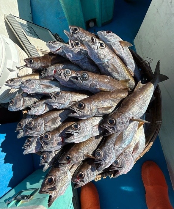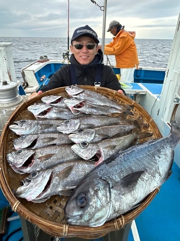 中深場五目出船でした。 朝一良型の黒ムツ一荷から始まり小型も混じったのでトップは黒ムツをツ抜け出来ました^^ 他にマアジ、オアカアジ、サバ、ユメカサゴ混じりました。 途中から潮流早く釣り辛い中でしたが最後までお付き合い頂きありがとうございました。
