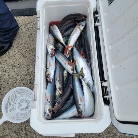 マアジ 15~38cm 15~46匹 サバ スマガツオ 10号アジ船です。本日はアジ船で出船致しました。 朝から終わりまでポツポツとアタリました。 小鯖とサメの猛攻受けながらも平均20尾前後でした。 嬉しいゲストはオアカムロでした。 本日もご乗船ありがとうございました