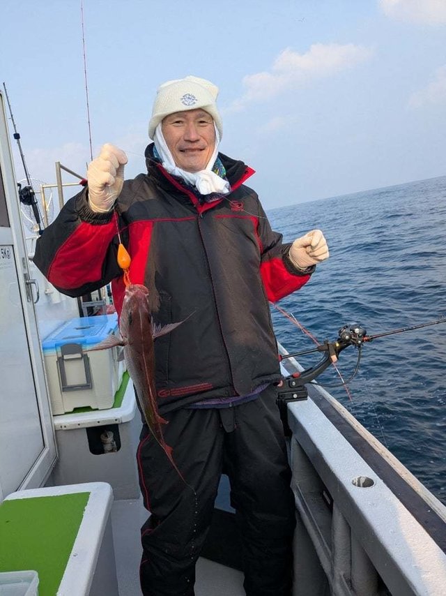 合計14匹 カサゴ キジハタ マゾイ 真鯛ゲーム出船! 食わない鯛をなんとか 仕留め様とあの手、この手。 パタパタとヒットするも、 沈黙の時が続き〜 そして、潮の流れ変わると トリプルヒット! 真鯛の食いムラの激しさに 翻弄した、1日でしたね。 ヒットカラーは、ブラック、 ブラック&ゴールドに 良く反応しましたよ。 船中14枚、 カサゴ、キジハタ、マゾイ多数 でした。 本日もお疲れ様でした。