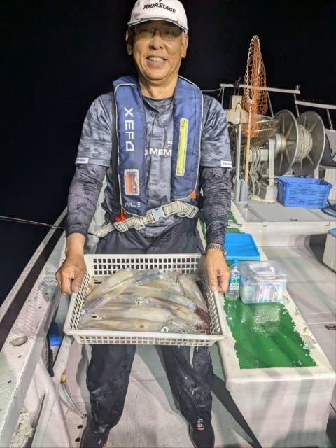 合計2匹 アカイカ 10~30cm 13~24匹 3便。 アカイカ/胴長10〜30cm/13〜24匹、 マゴチ/2匹。 マゴチは試験的に1時間ほど実施しました。