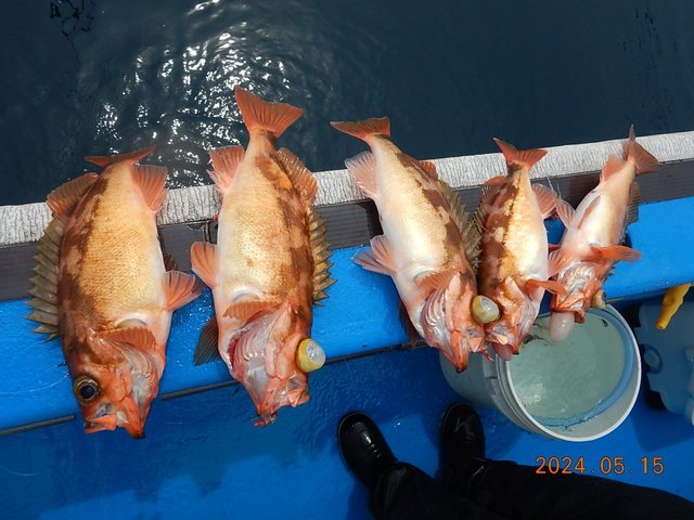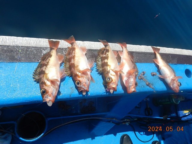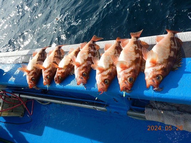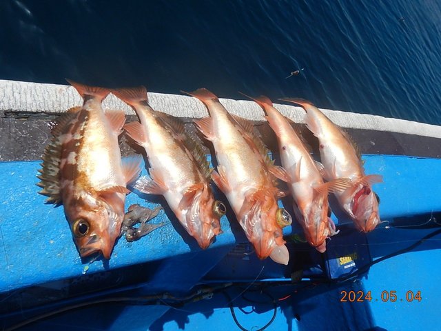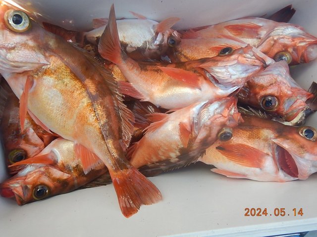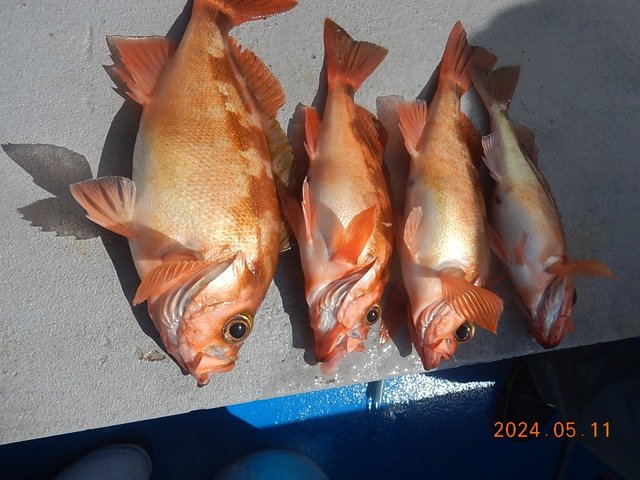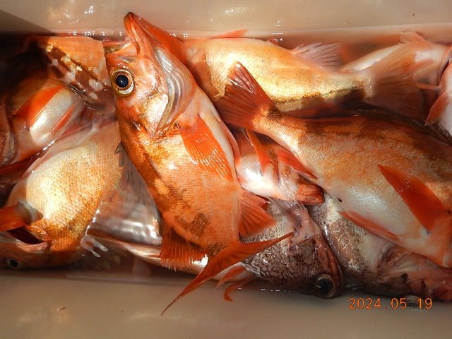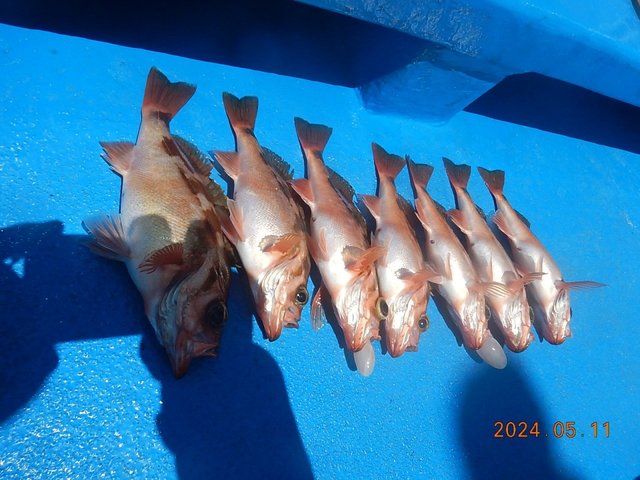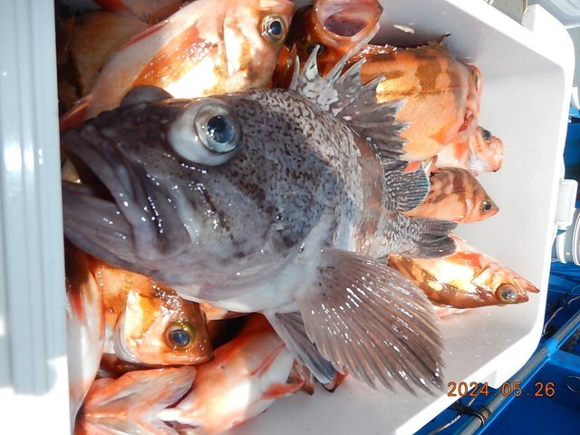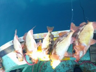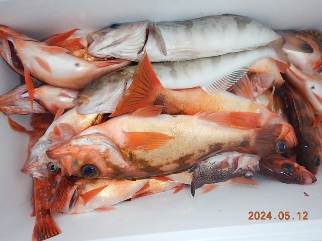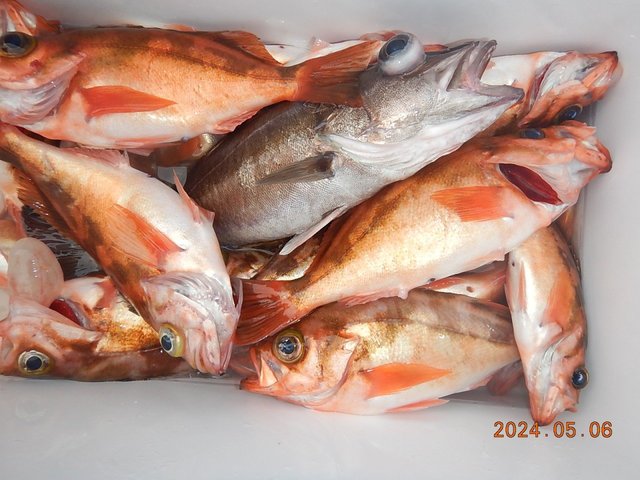 メダイ 3.00~6.00kg 0~2匹 メバル マダイ 1便。 メダイ/3〜6kg/0〜2匹/船中12匹、 他ホッケ、メバル、マダイが釣れました