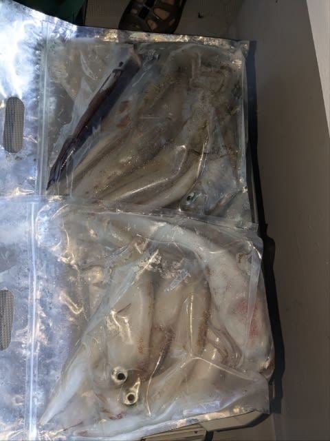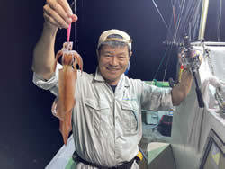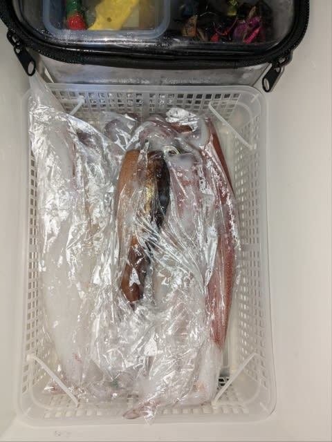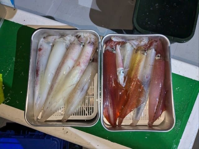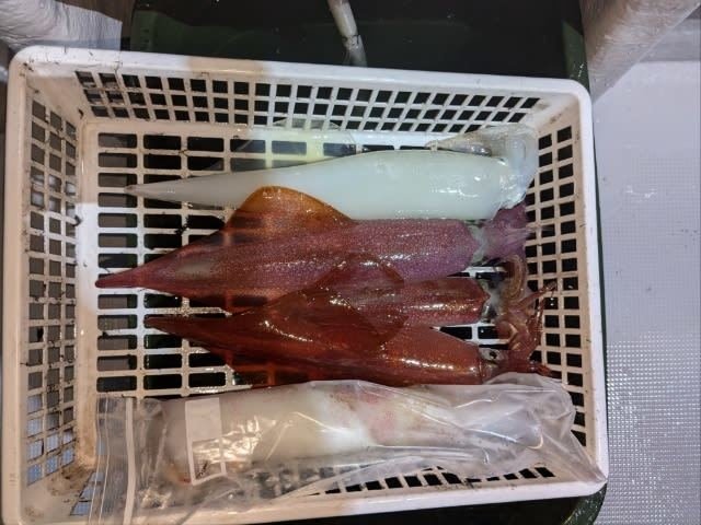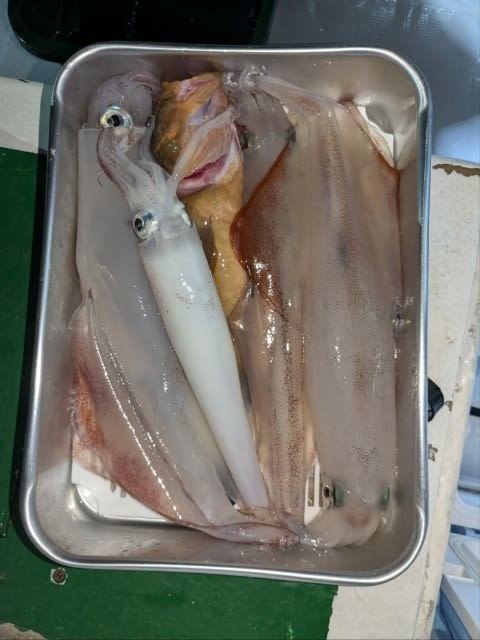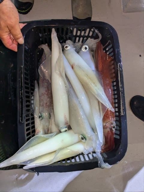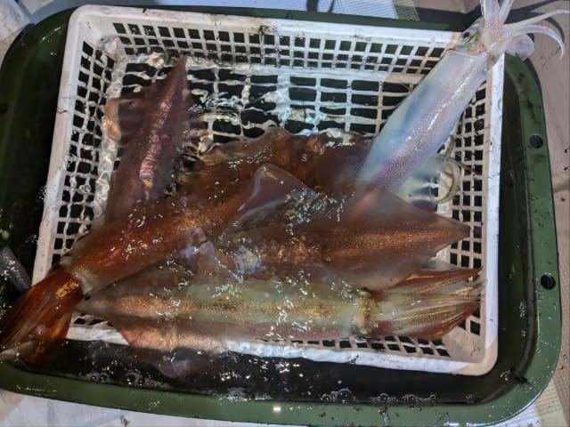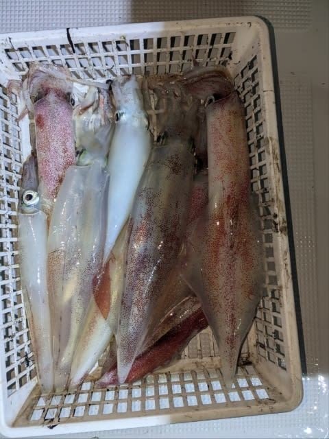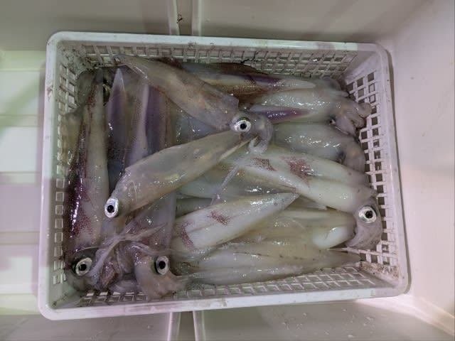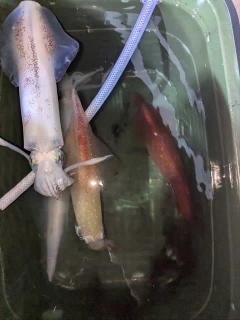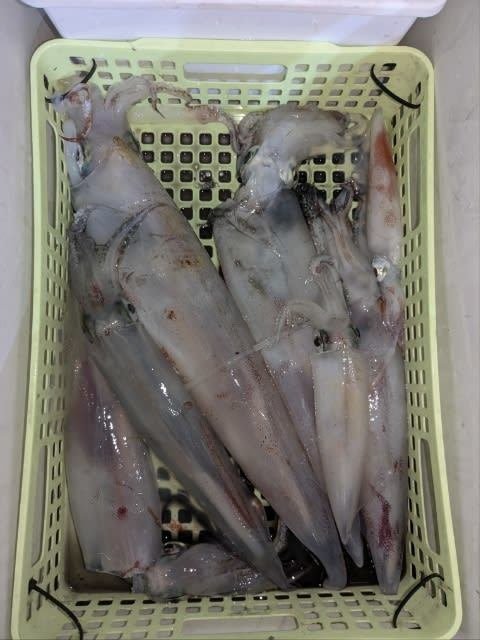 (ケンサキイカ)合計3匹 アオリイカ 12~23cm 0~4匹 夜船。ナイトアオリ。ナイトアオリ船はビギナーさんも多く釣果は今一つでしたが、また是非チャレンジしてみてくださいね。
