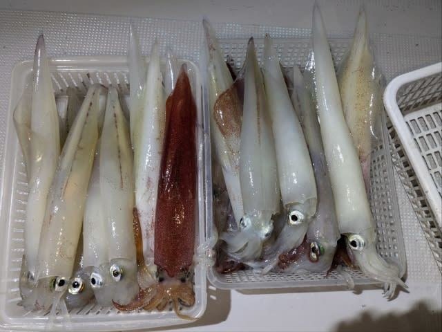 (ケンサキイカ)10~38cm 2~15匹 3便。 アカイカ/胴長10〜38cm/2〜15匹