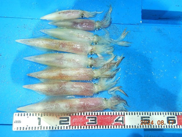 (ケンサキイカ)10~38cm 4~17匹 3便。 アカイカ/胴長10〜38cm/4〜17匹