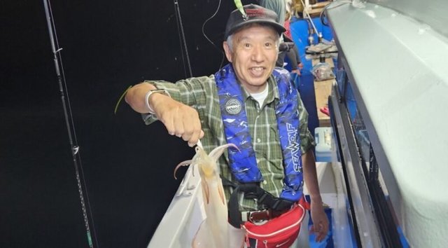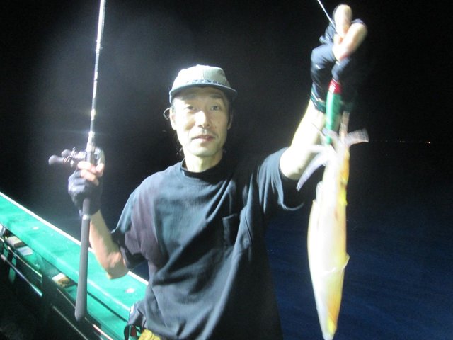 (ケンサキイカ)15~35cm 2~14匹 アカイカ狙いで出船しました 海はウネリもなく凪です 今夜のアカイカは…ツ抜けした人が3人でした ここに来て上向いて来てます タコも上がりましたよ お疲れさまでした